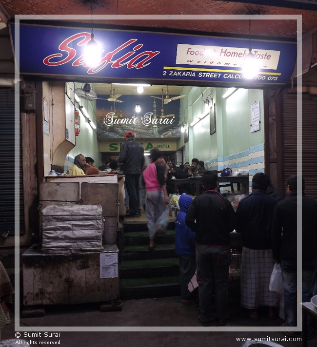 If you are coming from South, after Esplanade take Bentinck Street which will change its name to Rabindra Sarani and after crossing Podder Court and Tiretta Bazar, Nakhoda Masjid will be on the right. Enter the lane before the mosque.  Alternatively, you can take the Chittaranjan Avenue / Central Avenue and take the lane to the left just before Md. Ali Park. This lane will meet Rabindra Sarani / Chitpore and Sufiya is just a few meters before that on the left hand.